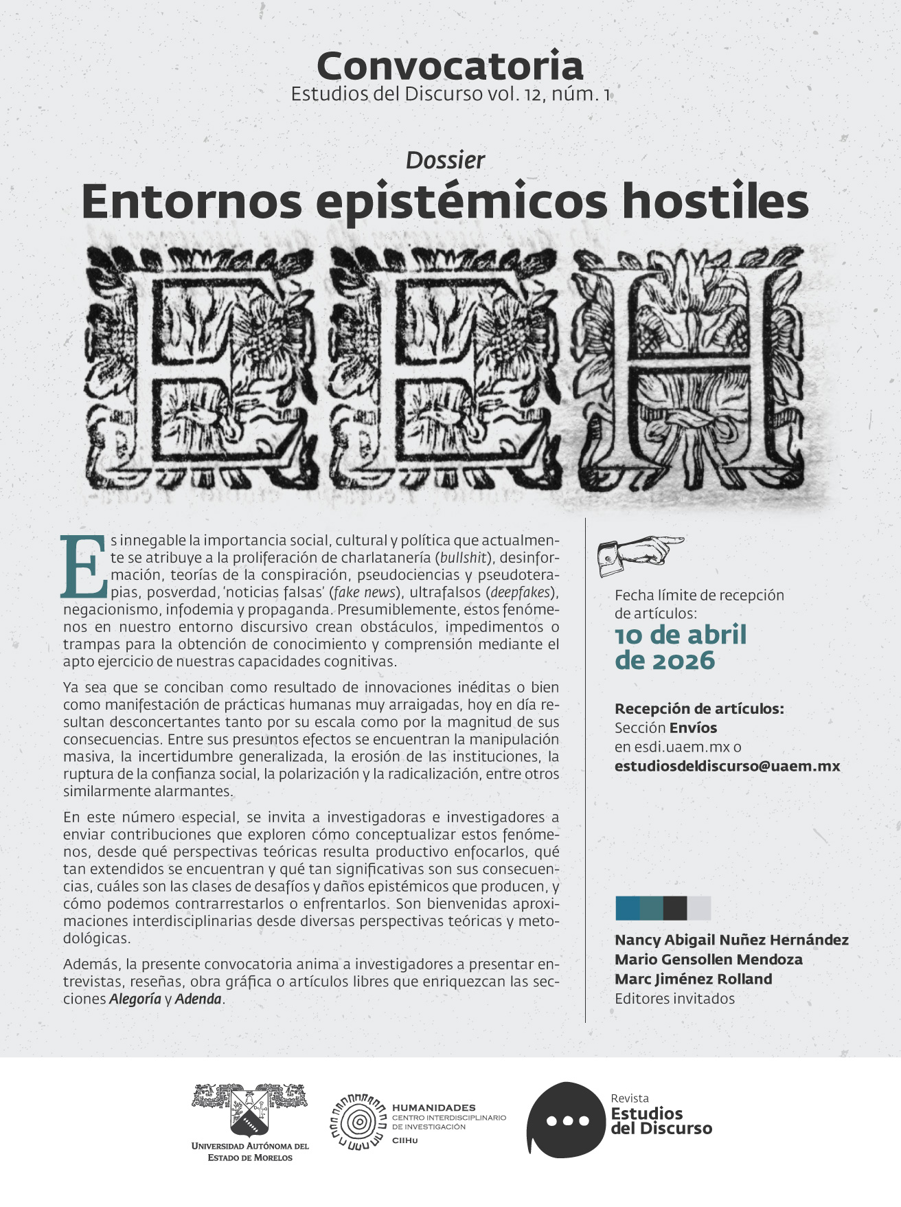 https://esdi.uaem.mx | estudiosdeldiscurso@uaem.mx| +52 7773297082 | Avenida universidad #1001, colonia Chamilpa, CP 62210, Cuernavaca, Morelos, México; fecha de la última modificación: junio de 2025.
